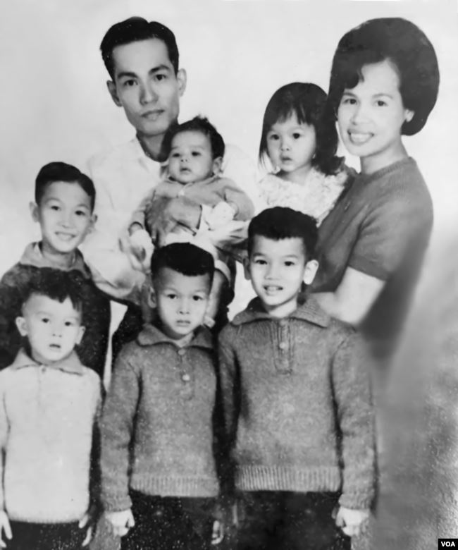 Gia đình Đại tá Nguyễn Tuấn, cậu bé Huấn hàng đầu ở giữa anh trai và em trai mình