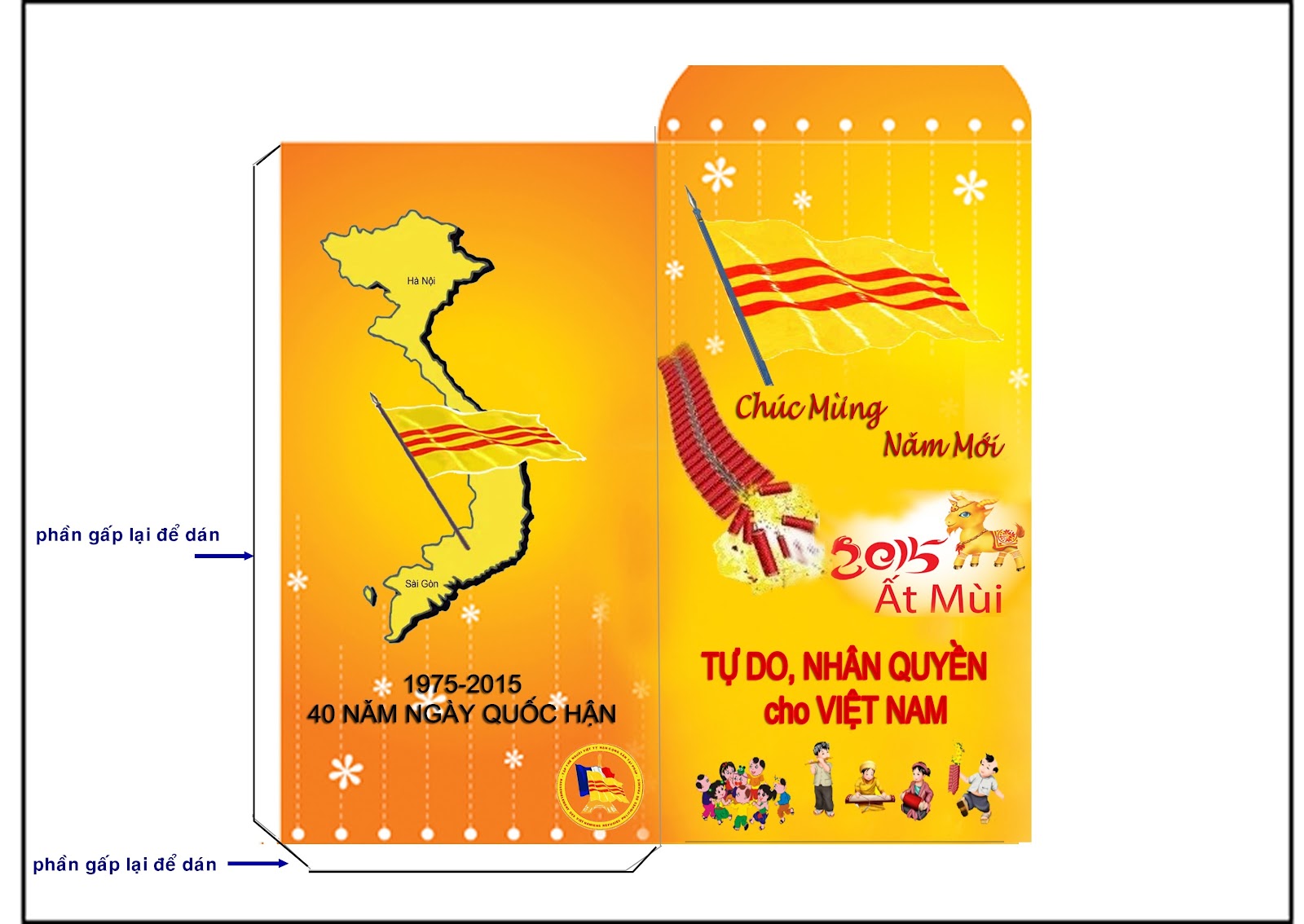 Xin hãy in và cắt ra bao thư Cờ Vàng mừng $ cho các thành viên trong gia đình vào ngày Tết Việt Nam!